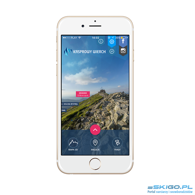 Nowoczesne rozwiązanie, jakim jest trójwymiarowa mapa szczytu w widoku satelitarnym daje użytkownikom ciekawą możliwość zapoznania się z tymi pięknymi okolicami. Mapa posiada wersję letnią i zimową, które można swobodnie przełączać – podobnie jak pory dnia. Dzięki aplikacji możemy obejrzeć fragment Tatr za dnia, w nocy oraz o zmierzchu. W wersja letniej sprawdzimy szlaki piesze, wraz z ich kilometrażem i orientacyjnym czasem przejścia. Widok zimowy pozwala zaś nie tylko spojrzeć na ośnieżone szczyty i doliny, ale również zobaczyć przebieg szlaków narciarskich i pracę wyciągów. Znajdziemy tu również aktualną prognozę pogody dla dolnej stacji kolejki w Kuźnicach i dla szczytu Kasprowego Wierchu.